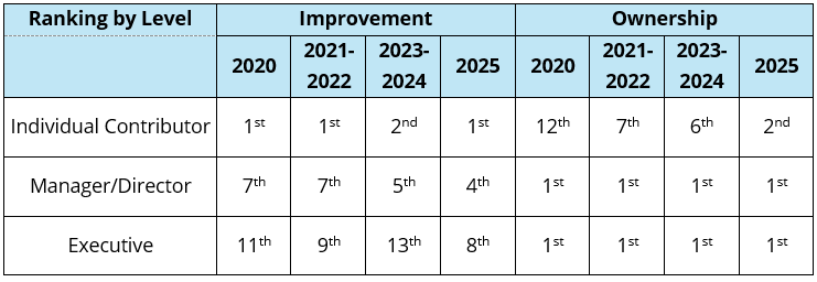 Improvement and Ownership: Rankings Across Leadership Levels (2020-2025)